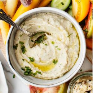 Instructions *** 1-7-23 good but too soupy, i added another can of beans! *** Prep Time: 5 mins Serves 4 PIN RECIPE PRINT RECIPE This easy white bean dip recipe is flexible, healthy, and delicious! Serve it as an appetizer or enjoy it as a snack with pita chips and fresh veggies. Ingredients 1 1/2 cups cooked cannellini beans, drained and rinsed 2 tablespoons extra-virgin olive oil 2 tablespoons fresh lemon juice 1/2 teaspoon lemon zest 1 small garlic clove 1/2 teaspoon sea salt freshly ground black pepper 2 to 4 tablespoons water, if needed fresh herbs, optional but suggested: 2 tablespoons torn fresh basil leaves 2 teaspoons fresh rosemary leaves Instructions In a food processor, pulse the cannellini beans, olive oil, lemon juice and zest, garlic, salt, and pepper until combined. With the food processor running, slowly add the water and process until smooth. Blend in the fresh herbs, if desired. Serve with veggies or pita. This recipe published with BigOven, and can be imported instantly by BigOven users. Download your free trial at www.bigoven.com. ![]() |